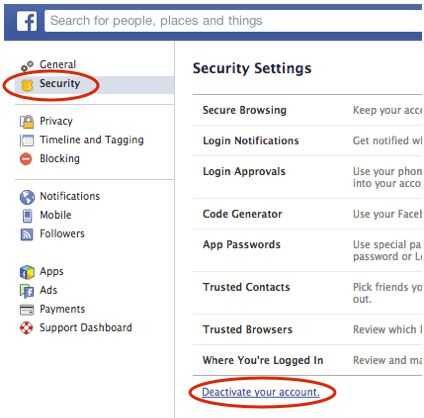 Paso 7: Haga clic en "Desactivar cuenta" en el menú de configuración de seguridad.