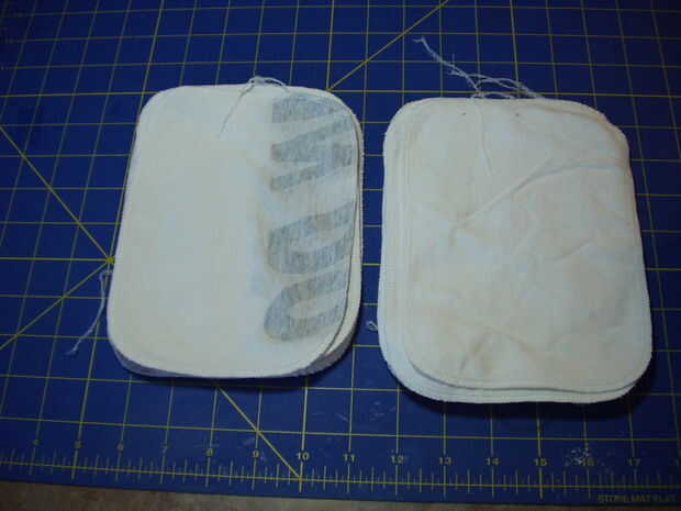 Me gusta hacer mis toallitas dos capas gruesas. Al llegar a la parte de la camisa que tiene impresión de la pantalla, puede activar la impresión en el interior de la pila de dos capas de espesor o lo tiran. Me gusta usar a la tela impresa, porque me ayuda a ordenar las toallitas después del lavado. Utilizo el material impreso en cosas que no quiero tocar mi rostro con.