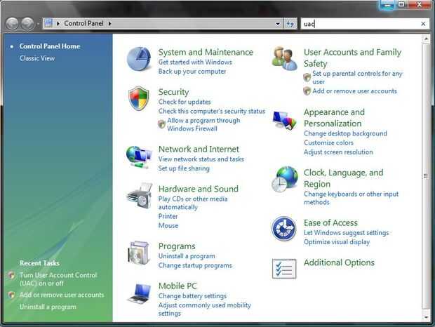 Ahora ir a la barra de búsqueda en la esquina superior derecha y escriba en UAC. Esto le llevará a la página de Control de cuentas de usuario.
