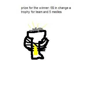ahora que han hecho su táctica y listo para luchar con un premio ready(optional). Si tu muy nuevo en el airsoft no un premio. lo que mi ejemplo es que hice una foto pero usted debe traer lo real. lo que haría es comprar un trofeo de plástico y poner algún cambio en él y poner 1 meterse por su compañero de equipo en equipos de bothe (todo lo que necesitas es 5 medles de 5 en 5 partido de equipo). bien ahora ya sabes cómo desafiar y crear un partido tan tiene en él! lucha (con airsoft ofcoures)! ¡ Mira mi instuctibles de futer! ¡Adiós!
