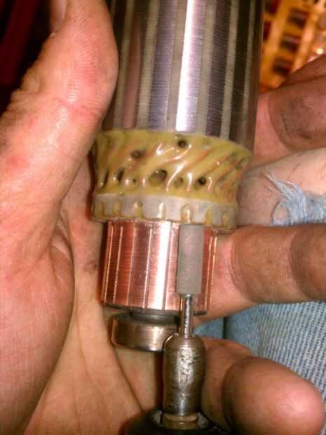 Uno tiene los rodamientos del rotor engrasados, romper la Dremel con el pulido abrasivo suave poco. Por favor, hay que tener en cuenta que este bit es suave al tacto. Si utilizas un poco abrasivo real estarás lo siento porque tus conmutadores tendrán que cortar. Deberás quitar los rodamientos, pegarlo en un torno y lentamente voltee el conjunto del conmutador hasta que todo esté aún. Por lo tanto, utilice la punta suave, suave que se utiliza para pulir un cuchillo.