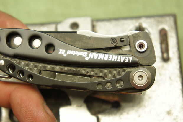 Comience apretando el tornillo opuesto el tornillo sobre la hoja (el artículo de fondo en la lista de piezas del paso anterior). Esto hará más fácil conseguir el tornillo sobre la hoja para aflojar.