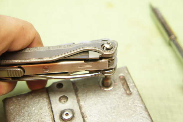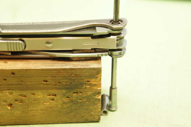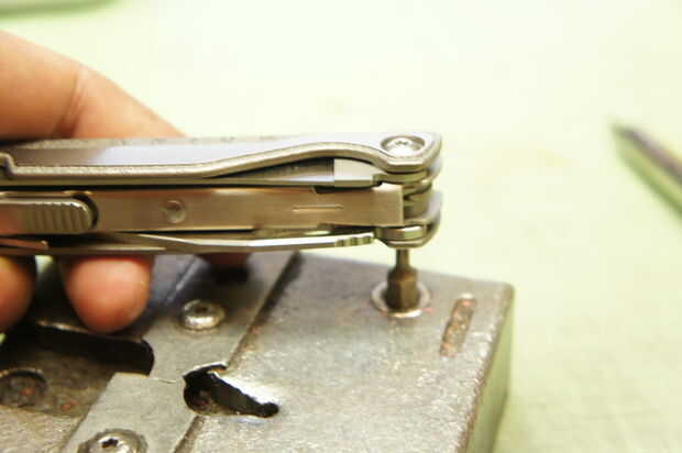 Cuando se quita el tornillo, utilice su poker para empujar el perno el resto a través de la herramienta. Puede que necesite pellizcarse las funciones exteriores para impedir atascamiento en el pasador.