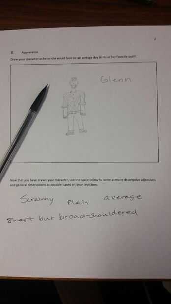 Habilidad artística no es necesario para este paso (como se puede ver en el ejemplo del autor). El punto de este ejercicio es delinear los atributos físicos básicos de su carácter que de lo contrario podría haber perdido dentro de sus procesos creativos internos.
