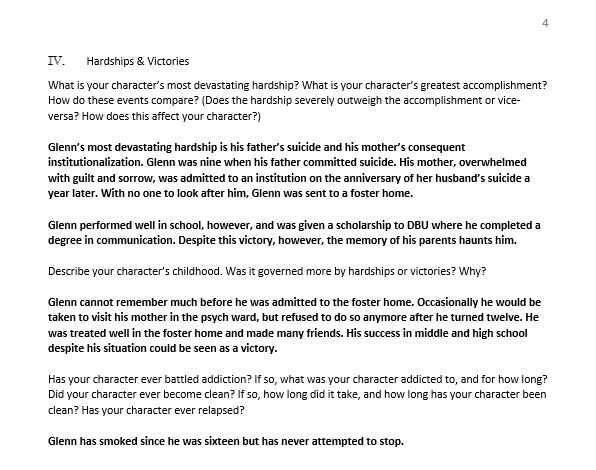 Para este paso, consulte el ejercicio IV: dificultades y victorias, en la "hoja de desarrollo de carácter".