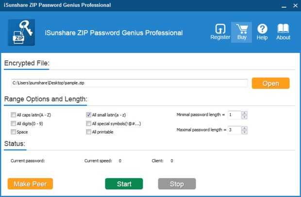 Tip: Es una forma de mejorar la velocidad de recuperación de contraseña. La otra es ejecutar iSunshare ZIP Peer en más equipos en la LAN.