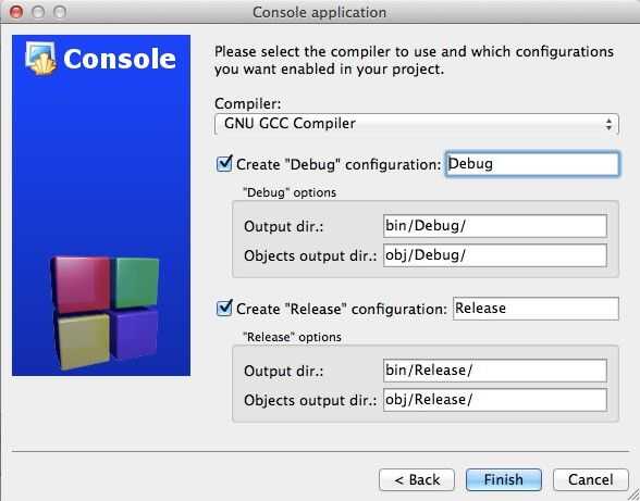 El siguiente paso nos pedirá configurar el compilador que se desea utilizar, para nuestro propósito, la selección predeterminada son perfectos, por lo que no es necesario cambiar nada en este paso. Presione el botón "Finish" situado en la parte inferior de esta ventana, para completar al asistente de configuración.