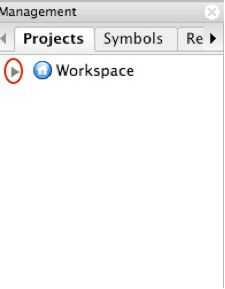 Ahora estás casi listo para comenzar a escribir código! En el lado izquierdo de la ventana de Code::Blocks, verá una sección rectangular gestión, que tiene varias pestañas. Si no está ya seleccionada, haga clic en la ficha de proyectos para ver su ruta de archivo de proyectos. En la pestaña "Proyectos", verás una categoría titulada "Espacio de trabajo", que tiene una pequeña flecha a la izquierda de él. Haga clic en esta flecha para mostrar u ocultar este contenido de categorías.