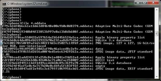 .mdinfo archivos y algunos de los ficheros .mddata son Apple propiedad binaria lista. Esta página habla de cómo leerlos. Aquí está algo de código fuente. O utilizar este programa.