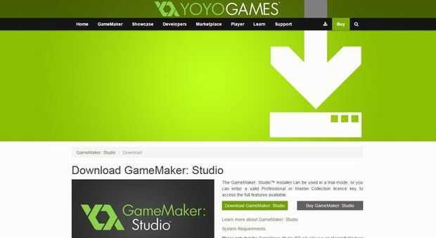 en primer lugar, ir a la página de descarga de yoyo juegos gamemaker studio. Se puede llegar a esto mediante la búsqueda "descargar de gamemaker studio" en cualquier motor de búsqueda y será el primer enlace que sale.
