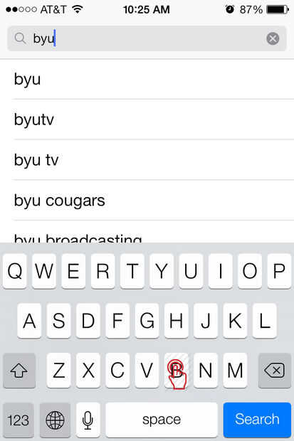 Paso 4: Pulse en la barra de búsqueda, a continuación, escriba en "b-y-u"