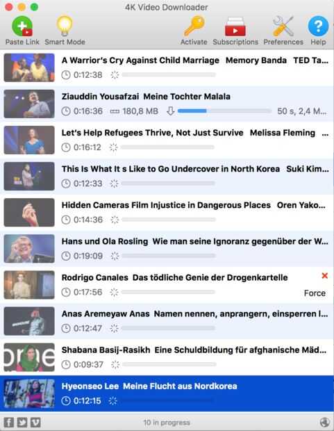 y la aplicación de todos los videos de la lista a su computadora en segundos.