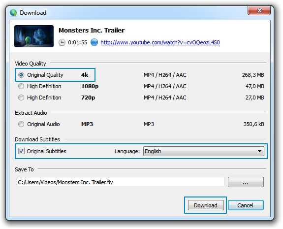 4K Video Downloader permite para descargar vídeo y subtítulos de YouTube en alta calidad lo más rápido posible al ordenador. Si desea obtener video en iPad, iPhone y otros dispositivos, es también su opción. Puede descargar video de Facebook, Vimeo,