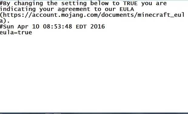 Primero crear una nueva carpeta y llamarlo sea cual sea. Luego pegar la jarra. Luego abrirlo. Usted verá eula.txt abra cambiar nombre verá eula = false haga ser CLUF = true. Luego ejecutar el jar.