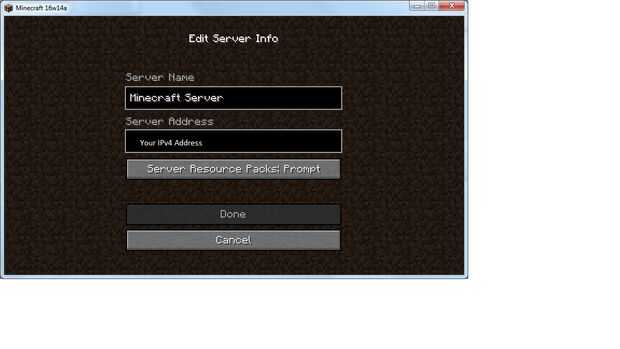 A continuación, abra multijugador, haga clic en Agregar servidor y escriba su dirección de IPv4.