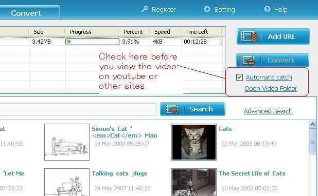 Solo Video Descargar estudio abierto, compruebe "Captura automática". Goo a YouTube.com y ver cualquier video que quieras descargar. El programa puede detectar, capturar y empieza a descargar automáticamente.