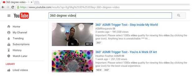 Ir a YouTube y hacer una búsqueda de «video 360 grados».