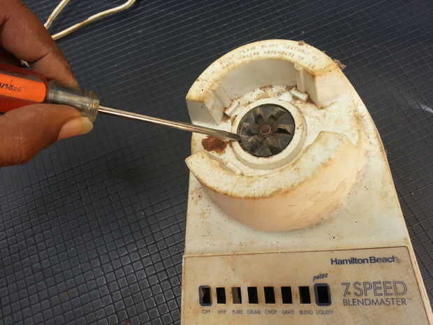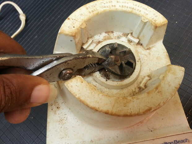 Primero había cansado levantándola con un destornillador de cabeza plana luego con los alicates de punta plana, pero resultó para ser un poco testarudo por lo que rompí el motor en su lugar.