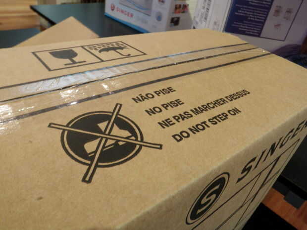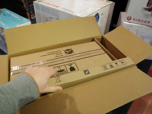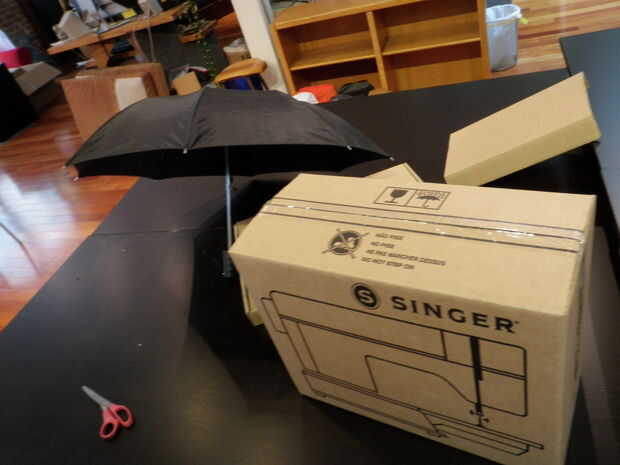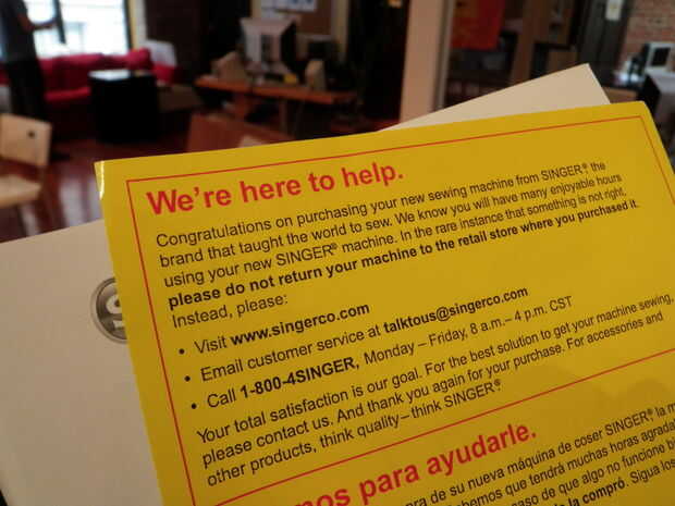 El sello del freno y siga todas las instrucciones en la caja. Este cuadro me dirigió para evitar caminar sobre la máquina de coser, consigue un paraguas y una copa de vino. Las dos primeras no fueron problema, pero me pareció un poco demasiado temprano en la mañana para el vino. En cambio, sustituyó el vino por un vaso de agua del grifo. Entonces reanudé mi trabajo.