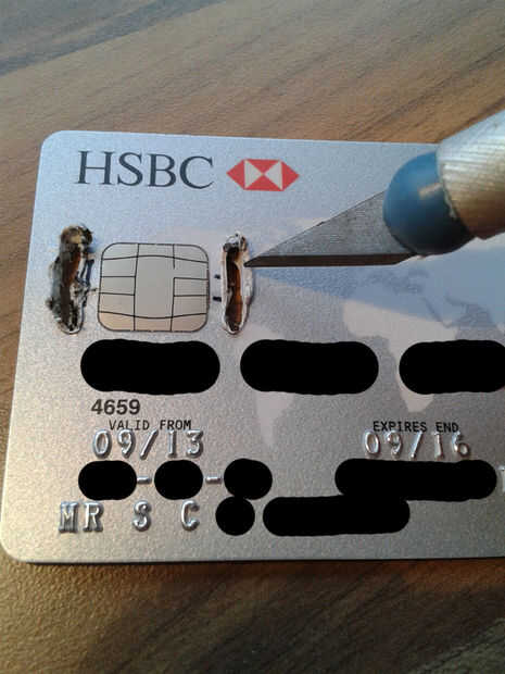 La izquierda ya que es la tarjeta más probable es que se quedan atascada en el cajero automático, así que usando su opción de cuchillo, un cuchillo del exacto o bisturí por ejemplo, recortar el plástico de la cicatriz de alrededor de las áreas fundidas. Sé puede parecer obvio, pero tenga cuidado. Se deslizó dos veces, pero por suerte solo tenía dos cerca de falta.