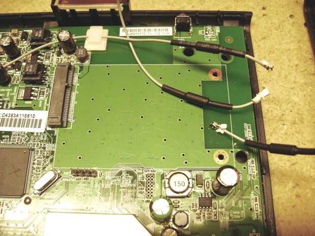 Una vez que usted saque el izquierdo se localiza el módulo RF en la esquina superior derecha de la placa principal. Encontrarás tres cables de antena con conectores miniatura conectados al módulo. Retire los conectores y dos tornillos que sujetan el módulo a la placa principal. Tenga en cuenta que los tornillos arandelas debajo de la Junta y debe usar alicates para sujetar debajo de la tabla para poder desenroscarlos. Una vez que se quitan los tornillos y los cables, quite todo el módulo de RF. También puede quitar las antenas a los cables, se pegan con cinta adhesiva de doble cara y fácil de quitar. También puede dejar las antenas lo son ya que no tienen ninguna función en este momento. Puede guardar todos los accesorios que quitó a montar más adelante si es necesario.