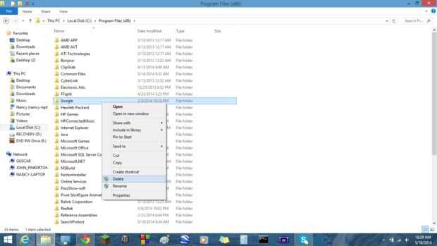A continuación, haga clic en programa de Files(x86) y luego buscar el archivo que debe tener una similar del mismo nombre a lo que desinstalado. Haga clic derecho y luego haga clic en eliminar. Ir a la papelera de reciclaje y en él una vez haga clic en la x roja.