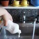 Tomar una botella de acondicionador de cabello y arrojar a chorros un poco encima de la espuma en el fregadero.