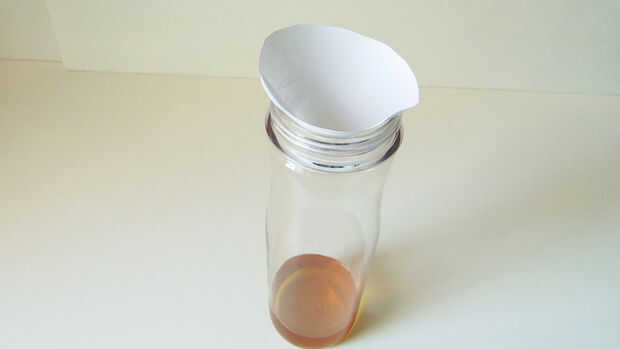 Moscas de la fruta son realmente molestos. Con esta trampa simple será deshacerse de ellos sin ningún esfuerzo. Todo lo que necesitas esun glas / tarroaguaSirupvinagreplato de jabónPaso 1: mezclatomar un glas y llenar la mitad con aguaAñadir el sirop