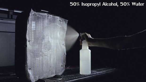 Una vez que han recogido un número importante, es una manera respetuosa para matarlos darles un poco de alcohol para fricciones diluido. El alcohol se diluye a una concentración de 50% con la adición de agua para que ya no es inflamable y no corre el riesgo de coger el ventilador en el fuego. Después de que los mosquitos han muerto y son cepillados desde la pantalla del alcohol se evapora y lo que queda detrás es seguro para otras criaturas del bosque comer.