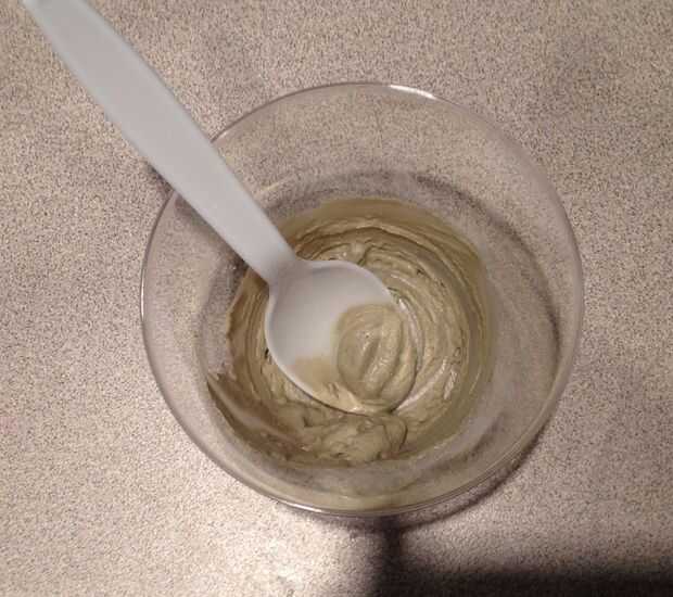 Mezclar cantidades iguales de arcilla y vinagre. Usé una cucharadita de cada uno y había dejado un montón. (Hacer una cucharada de cada uno y utilizarlo para el mejor facial siempre mientras lo tienes mezclados)