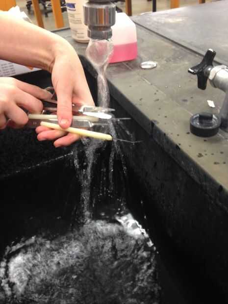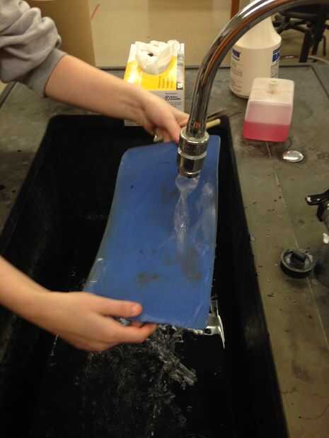 Después de limpiar todas las herramientas, utensilios y disección mat con solución de amanecer, enjuagarlos bien con agua tibia.