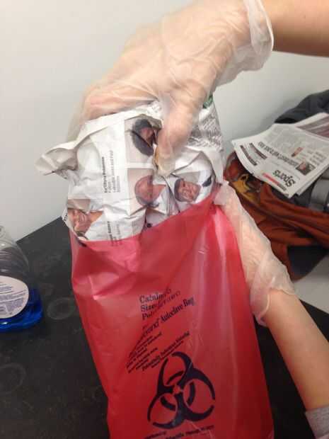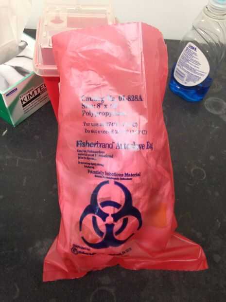 Paso 4: Coloque el periódico con el sapo y sus partes en la bolsa de biohazard