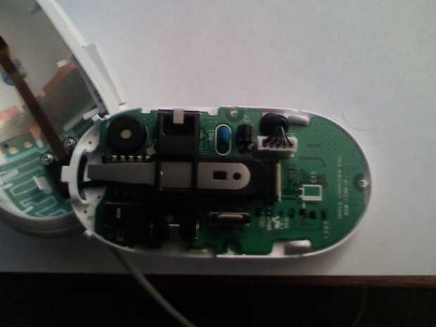 En la parte superior del ratón es la cubierta de la bola del ratón.