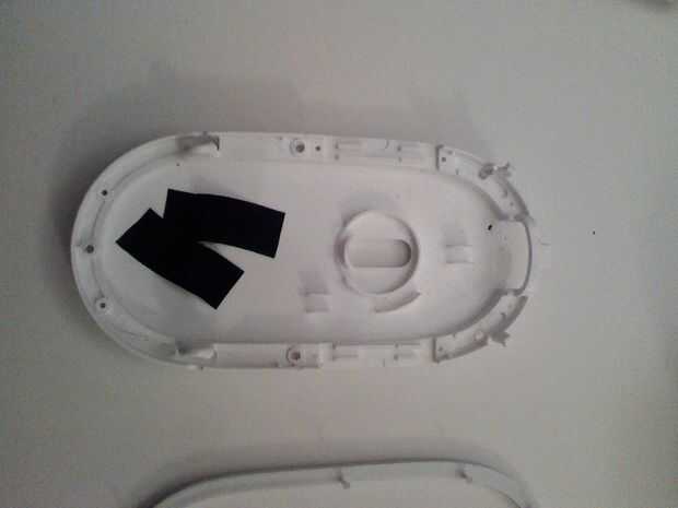 El cable USB se lleva a cabo en la parte inferior con un par de estratégicamente colocados trozos de cinta.