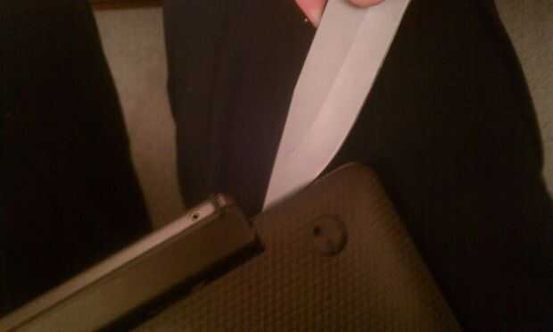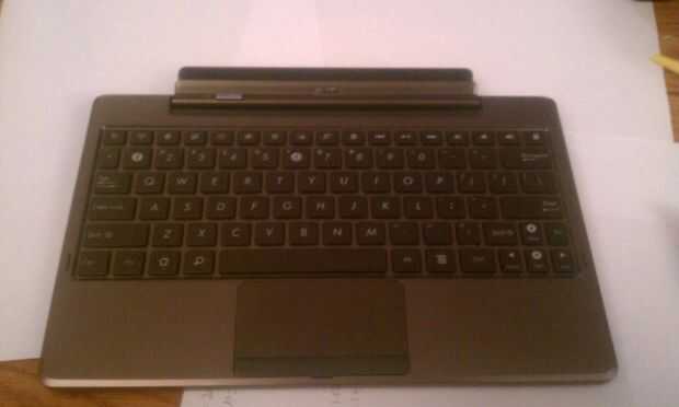 Después de quitar los tornillos con cuidado retire la placa inferior. Empecé desde la esquina trasera derecha (con la unidad ascendente) y usa mi cuchillo de bolsillo para suavemente Retire la placa inferior. Usted tendrá que ir y venir entre ambos lados para conseguirlo sobre todo quitado. Entonces usted necesitará Deslice suavemente el cuchillo entre la carcasa metálica y la placa inferior de plástico en la parte frontal de la unidad con el fin de eliminar completamente la parte inferior. Ten cuidado, hay dos cables de cinta que conecta la parte inferior a la parte superior. Un cable es para el teclado, el otro es para la almohadilla.