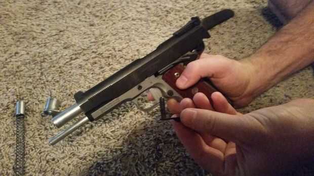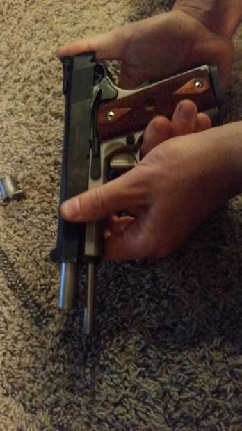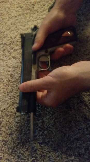 Tire de la corredera hacia atrás hasta que quede alineada con la muesca de la palanca de bloqueo de diapositivas se muestra en la figura 3.