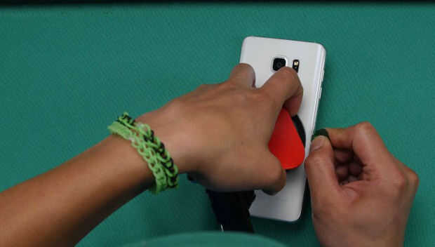 Pero esta es la mejor manera de hacerlo ya que el punto débil de los adhesivos son en el "centro" del teléfono, no en la parte superior parte inferior. Sólo tómate tu tiempo y repita los pasos 1 y 2 hasta que pueda conseguir el pick de guitarra intermedios.