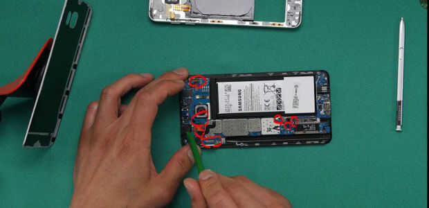 Desde la parte superior del teléfono y la placa base debe escurrir fácilmente, también hay uno más flex cable excesiva antes de la placa base puede ser libre.