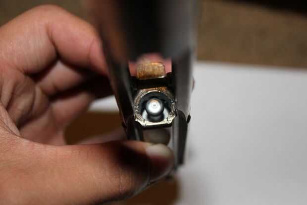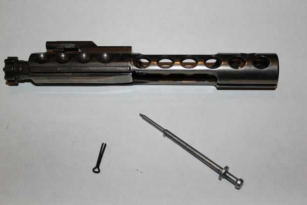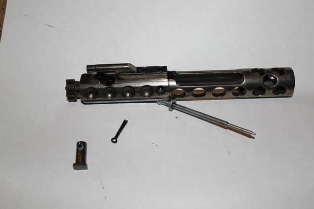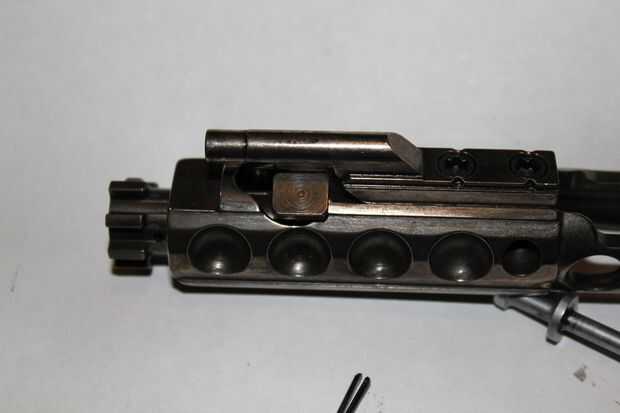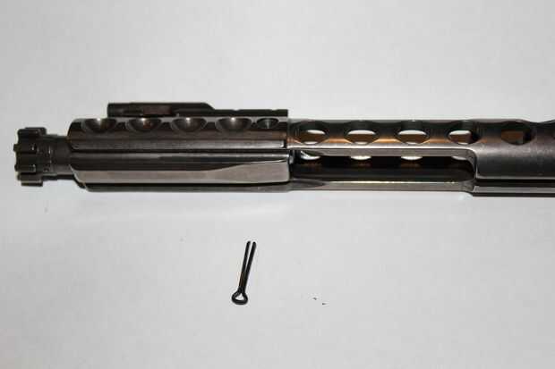El último paso es quitar el tornillo. El perno es la pieza que cierra la parte delantera de la BCG. Para retirarlo, tire de él hacia fuera, puede ser difícil de sacar, si no lubricada correctamente, o debido a la acumulación de carbono.