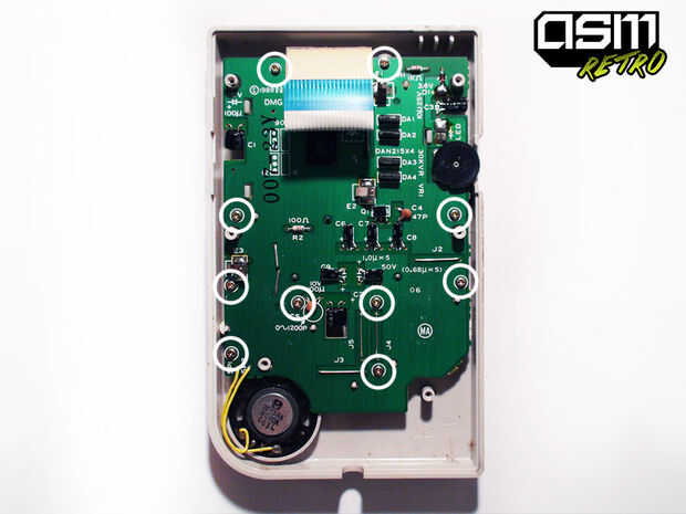 El frente del tablero de circuito de LCD tiene varios más tornillos de cabeza de Philips que necesitan ser removidas.
