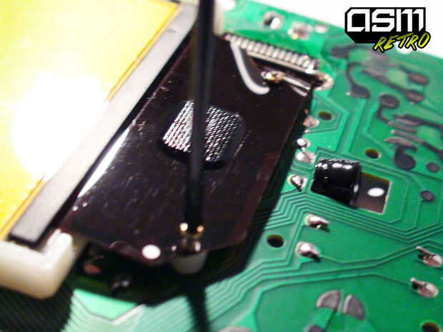 Si desea hacer modificaciones LCD, necesita quitar los dos tornillos finales sobre el cable de cinta de la pantalla LCD. Usted necesitará un pequeño destornillador para quitar a estos.