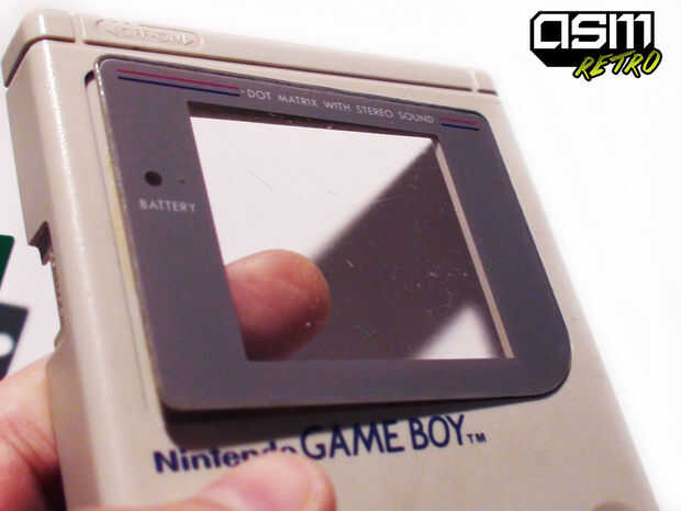 Si ya no ha caído, ahora puede retirar la cubierta de la pantalla presionando hacia fuera de la parte posterior. Si usted tiene la intención de reemplazarlo, quitar todos el pegamento seco de la cáscara. Usted puede comprar fundas de pantalla de reemplazo en http://asmretro.com o si desea utilizar un genuino, usted puede comprar una pieza nueva de adhesivo precortado para volver a colocar tuyo! http://asmretro.com/Screen-Cover-adhesive
