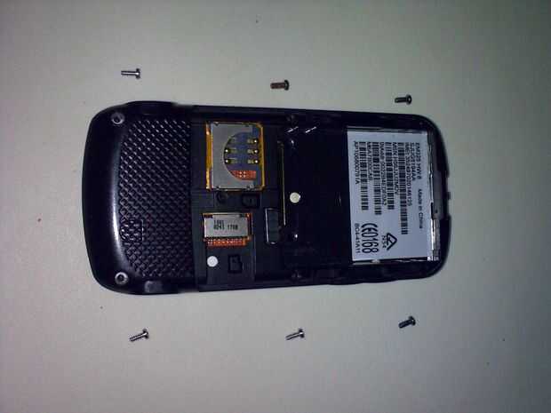 Naturalmente, empezamos quitando la pila (suponiendo que el teléfono ya está cerrado). Si ya no sabes cómo se quita la batería deslizando primero, con una ligera presión, la batería de compartimiento de la puerta y luego extraer la batería por su borde superior. Por supuesto, comprobar las fotos para la dirección.