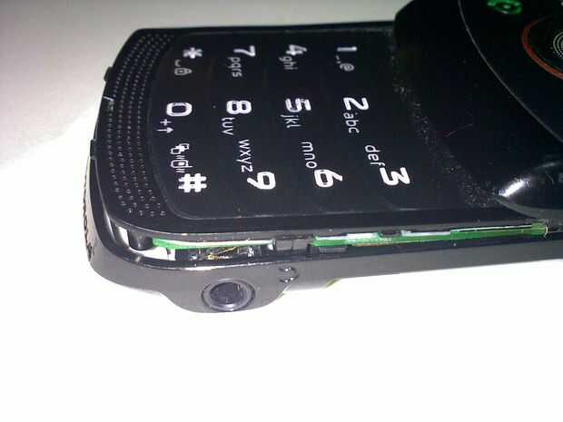 Después de haber destornillado la placa trasera, deslice hacia fuera el teclado. Ahora tendrás el destornillador plano para separar, muy suavemente, las dos piezas de plástico del cuerpo principal. En la foto he marcado las muescas; Inserte con cuidado la cabeza de plástico en algún lugar entre ellos y con cuidado haga palanca abierta, todo el camino alrededor de la frontera. Usted tendrá la pieza de plástico detrás hacia fuera en ningún momento.