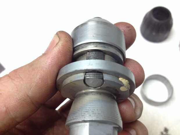 Estas fotos fueron tomadas realmente en el proceso, pero ahora es un buen momento para marcar las mordazas y el cuerpo del portaherramientas. Mientras que las mordazas no tienen que volver en los mismos orificios estaban en, que necesitan para mantenerse en el mismo orden. La forma más sencilla de asegurarse de que la orden no se mezclan es marcar al menos dos orificios de la tirada y dos mordazas. He utilizado un punzón de resorte, pero podría utilizar una lezna del rasguño, uñas, etc para marcar las piezas. Evitar usar cualquier marcado que puede eliminar o quitar productos de limpieza, etc..