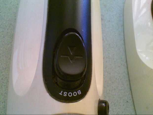 Hay ningunos tornillos visibles y a menudo es una mala señal. ¡ No hoy! Empuje hacia adelante el interruptor Boost. Cuidadosamente el extremo posterior del impulso la palanca botón arriba. Debe ONU-clip y levante.