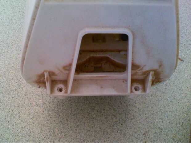 Usando su técnica favorita, (la mina se destruye la punta de uno de mis favoritos flatheads,) Quite los dos tornillos de punta triangular de la parte delantera del cuerpo principal. Hey Presto, usted ahora tiene acceso a las tripas del aparato.