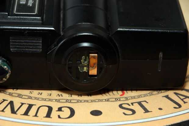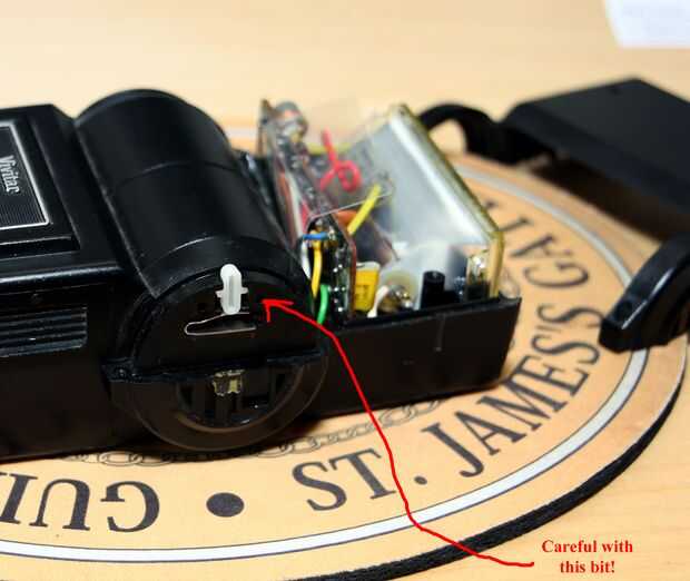 Observe la forma de la cubierta para el flashes líneas arriba, y más importante la forma en el cuadrante calculador sea indexada por una pequeña placa blanca con un golpe en él. (Este tope y resorte crean los clicks al girar el dial.).