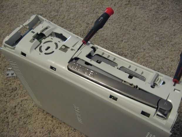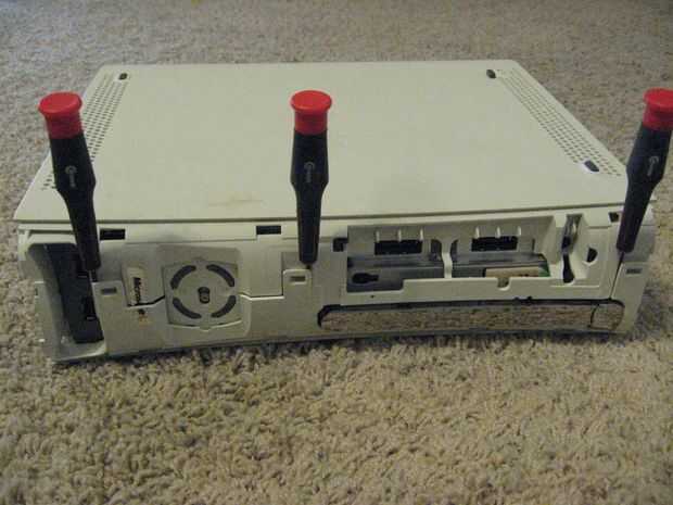 Se puede utilizar ya sea cabeza plana destornilladores o clips de papel para abrir las cerraduras. Se extraen los cuatro al mismo tiempo, y puede quitar la cáscara más baja. Debe cortar o pelar apagado la etiqueta de garantía de Microsoft en la parte frontal de la consola, hacerlo anulará la garantía. Los adhesivos tienen un residuo que les impide ser puesto detrás en limpio. Si tienes una etiqueta engomada del metal son la atención acerca de la garantía, lea a continuación. Si usted tiene uno de los nuevos adhesivos de papel, no hay ninguna manera eficaz eliminar sin saber Microsoft.