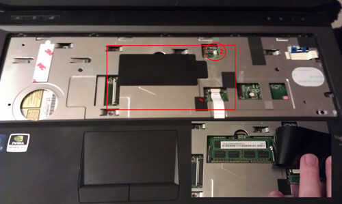Ahora usted debería estar preparado para simplemente eliminar teclado de G53 y verá una cubierta plástica negra delgada donde se encuentran las dos primeras ranuras de RAM (en la foto). Si se trata de vacío (depende del modelo) y fueron sólo actualizar tu RAM, Felicidades! En ese caso solo puede insertar los palillos de la memoria RAM y dejar de leer ahora mismo. El G53SW mayores a menudo tiene todas las ranuras presentadas hasta con palos de 2GB, mientras que el G53SX nuevos sólo podría utilizar 2x4GB en las ranuras que se encuentran por debajo de la laptop. Si todas las ranuras se llenan con palos de 2GB y usted quieren actualizar la computadora portátil más allá de 8GB, tienes que reemplazarlos con módulos de 4GB.